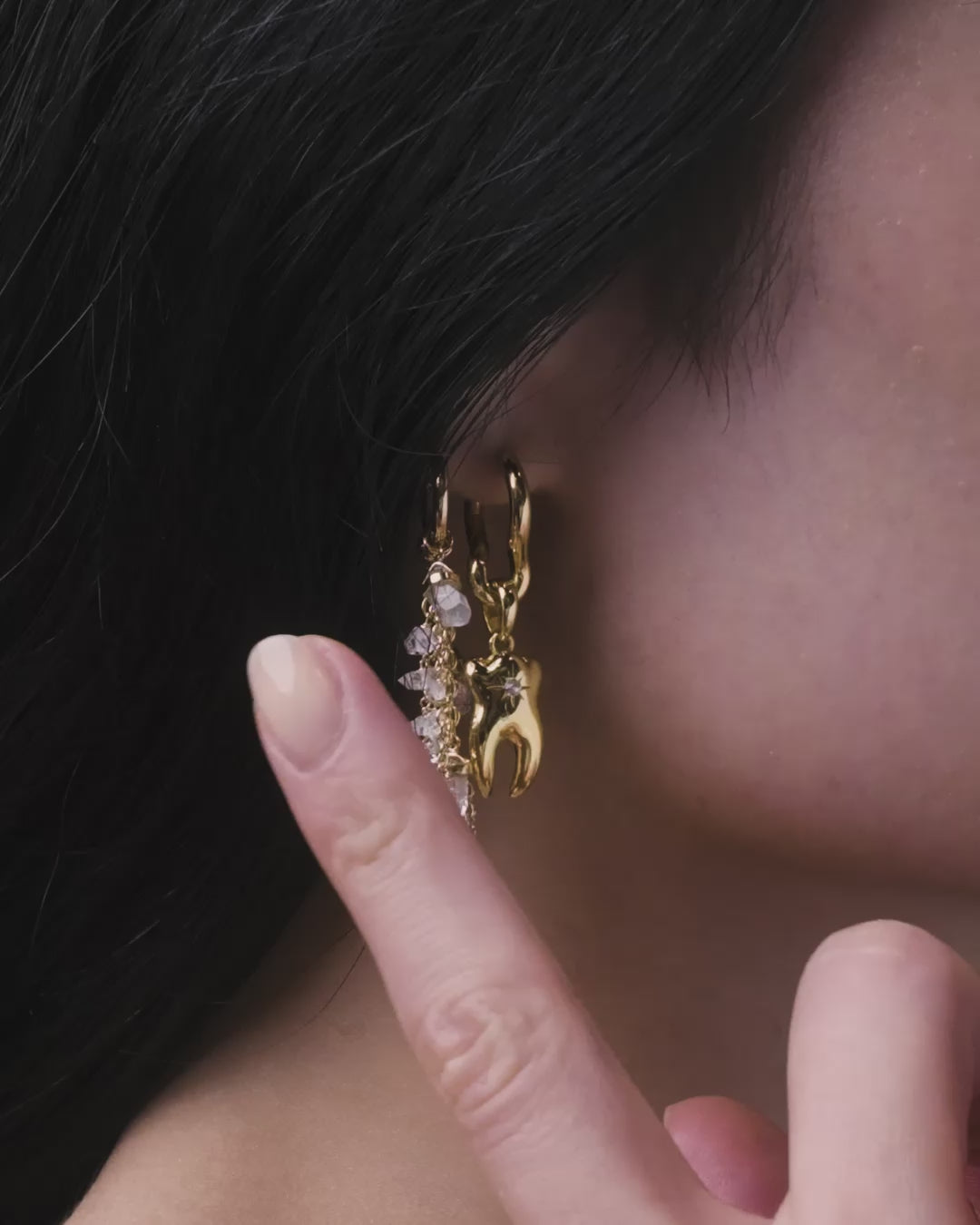 Raw energy, held together in an unbreakable circle. In collaboration with IFC/Shudder's witchy slasher film, Awe x Forbidden Fruits brings the coven's most coveted talismans to life. Organically shaped natural pearls intermingle with raw clear crystal quartz on silver chains, bringing a refreshingly chaotic energy to these dynamic ear cuffs. Selected to invoke divine feminine energy and the power of manifestation, these organic elements hint at the tension between polished outward appearances and unfiltered, primal energy. The chains on these huggie earrings can be removed and re-ordered at will just like the Fruits' friendship bracelets — ideal for when the lineup of your coven changes, or you need to thin the herd.